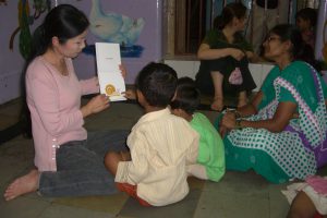 インドでの活動の中に、子ども達への絵本の読み聞かせがあります。